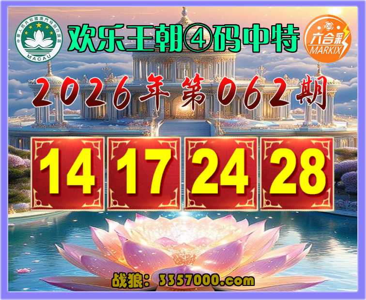 062期:《欢乐王朝》 ☝️④码中特☝️【14.17.24.28】开:24